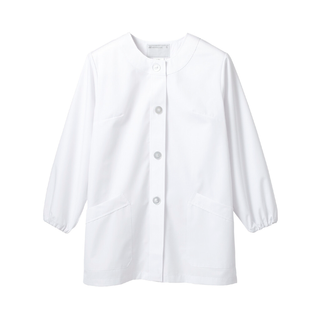住商モンブランの調理衣です。 抗菌機能を付与したレディス長袖、イージーケア性に優れたスタンダードな調理衣です。