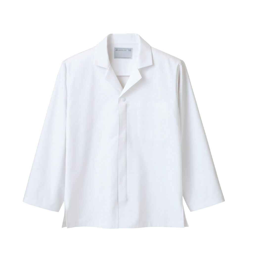 住商モンブランの調理衣です。 抗菌・透け防止・制電機能を付与した男女兼用長袖、異物混入対策を施し、HACCP対応の調理衣です。