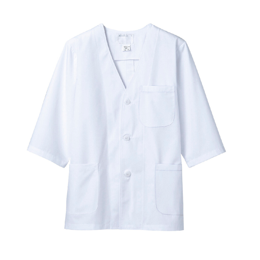 住商モンブランの調理衣です。 抗菌・制電機能を付与したメンズ用7分袖、やや厚手の生地を使用した、スタンダードなデザインの調理衣です。