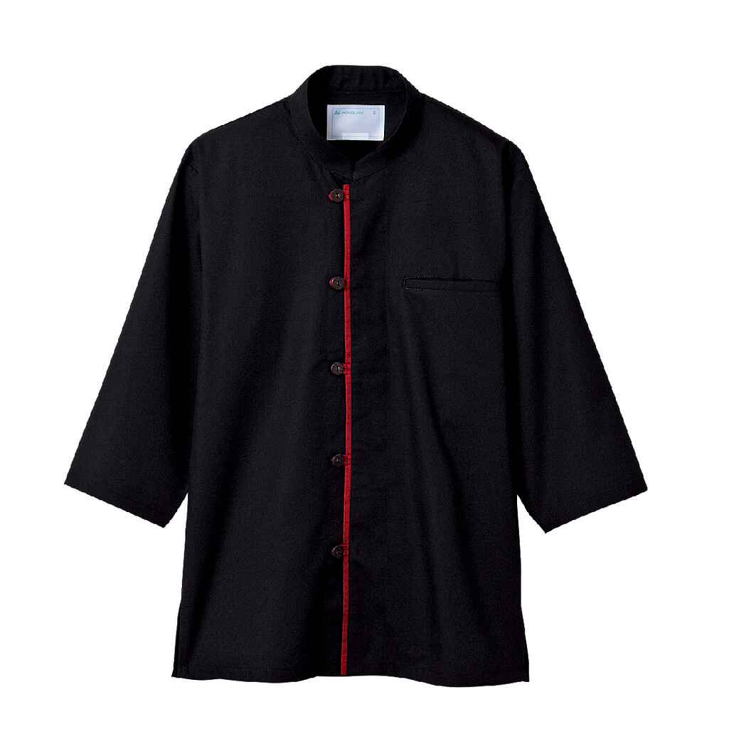 住商モンブランの調理用シャツ(男女兼用7分袖)です。 チャイナ服のようなアジアンテイストなデザインの調理シャツです。
