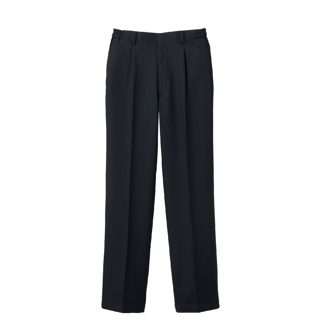 退色防止・撥水・制電機能を付与した、ワンタックの両脇ゴム仕様のパンツです。