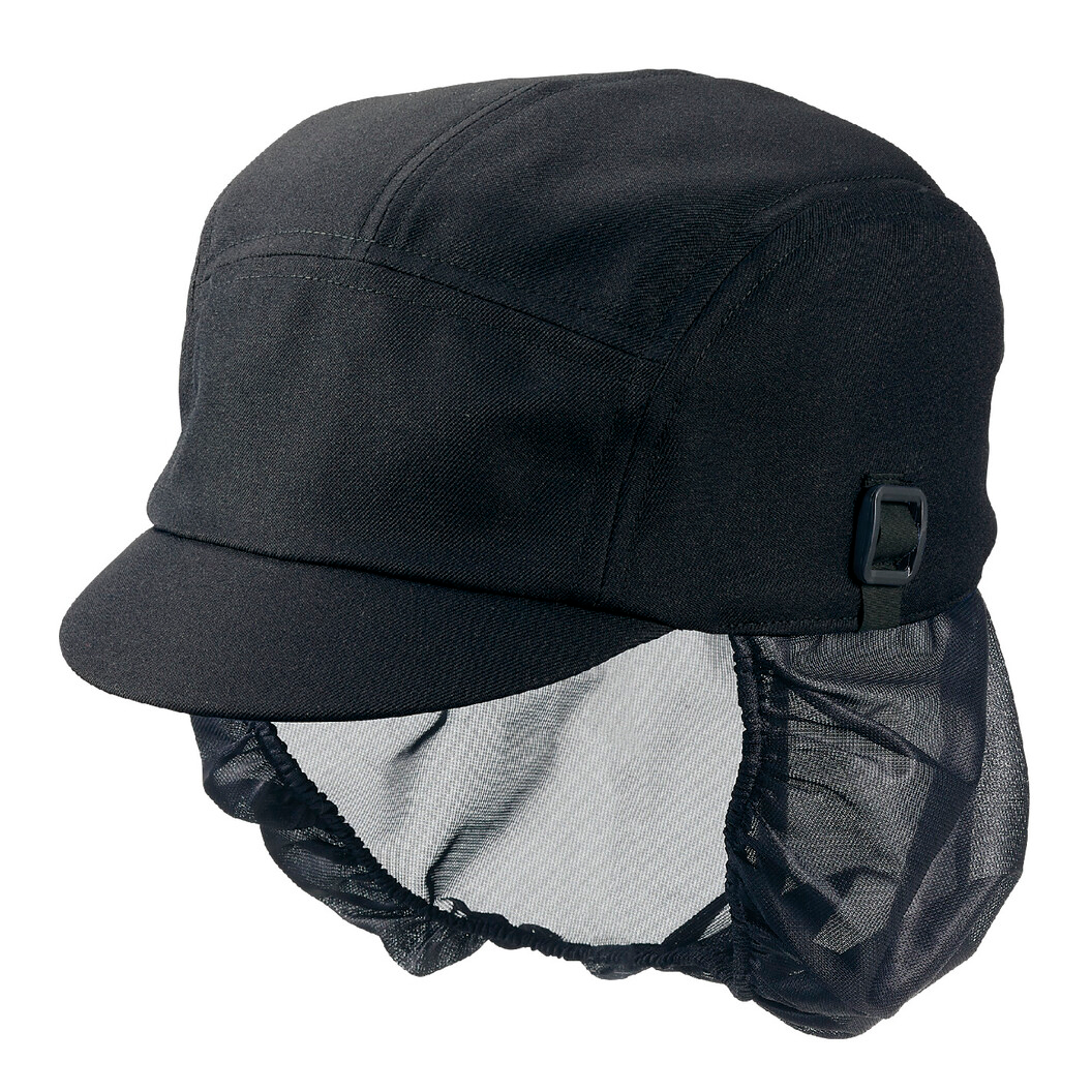 塩素消毒や工業洗濯に強いタフな素材を使用した、たれ付キャップです。 キャップのサイドに取り付けられたマスク掛けで、耳が痛くなるのを防ぎます。 形態安定性に優れたシリコン素材のツバ芯で型崩れを防止。 ベルトスライドイン仕様で、アジャスター調節後のひもの先をすっきり入れ込めます。 髪をすっぽり包み込む、毛髪落下防止ネット(たれ)付きです。