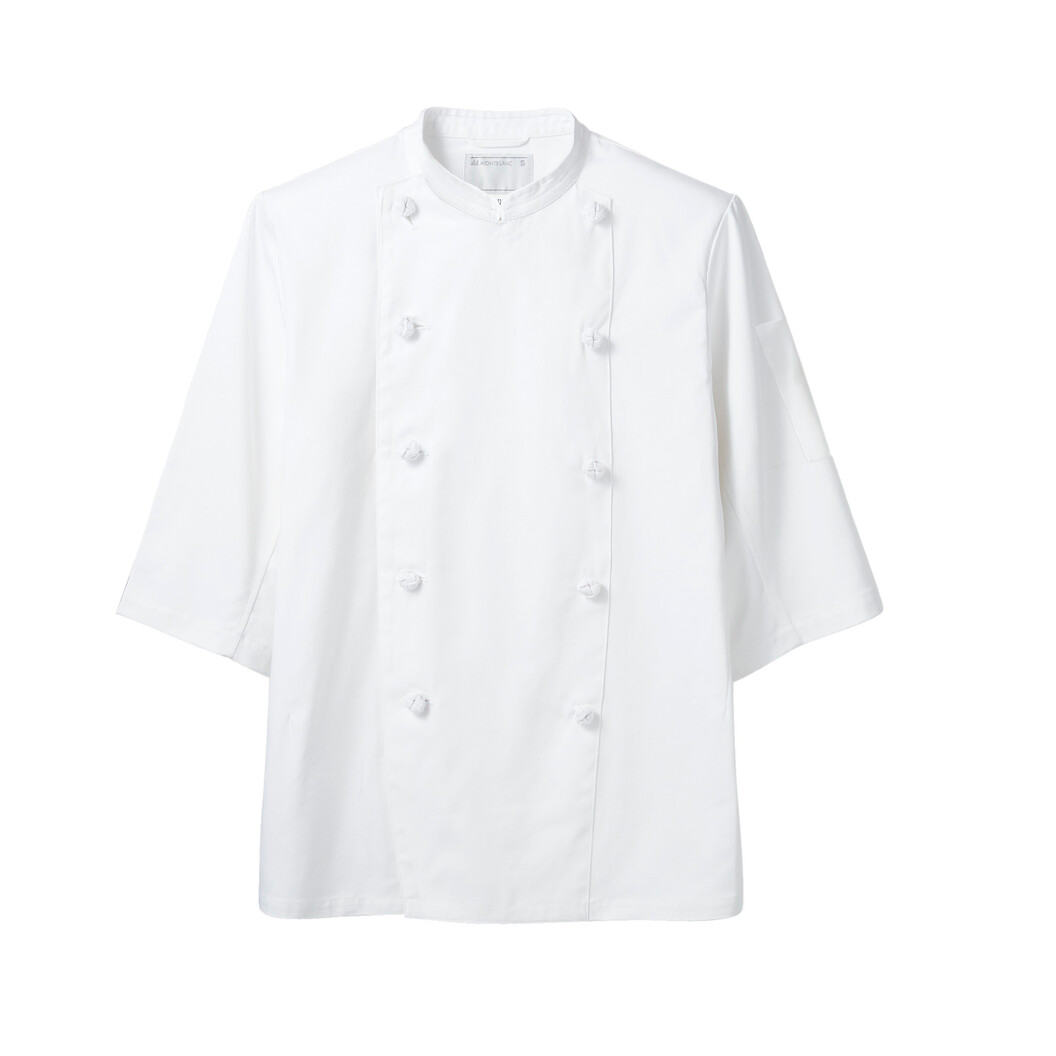 半袖、前合わせは右前、左前どちらでも、良質な着心地のスタンダードなコックコートです。