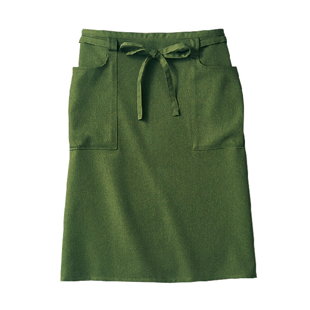抗菌・制電機能を付与した、天然色素を用いて環境に配慮したエコ素材「オニベジ シリーズ」、ベルトループのアクセントが効いたバランスの良いサロンエプロンです。