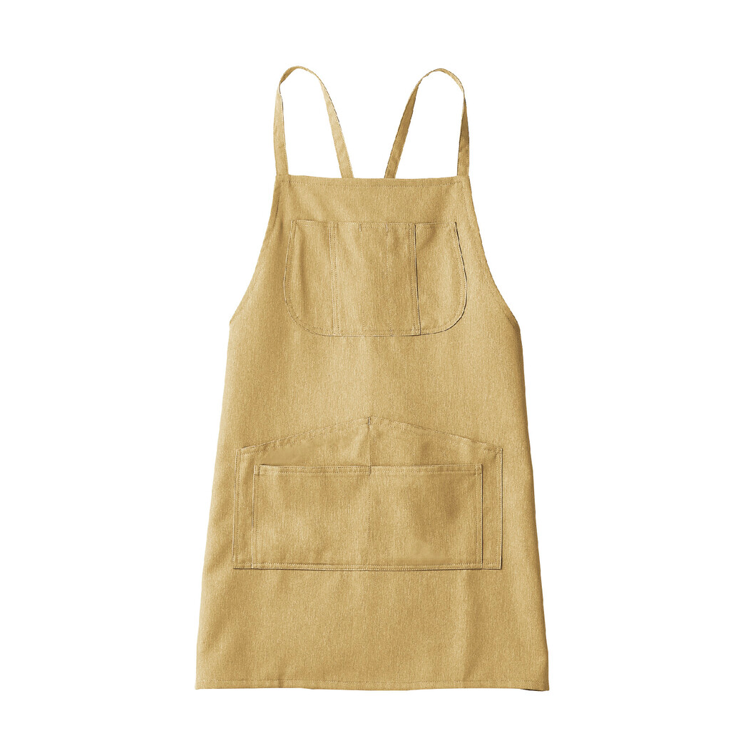 抗菌・制電機能を付与した、天然色素を用いて環境に配慮したエコ素材「オニベジ シリーズ」のエプロンです。ポケットに小物を入れて、サッと使えるワークエプロンです。