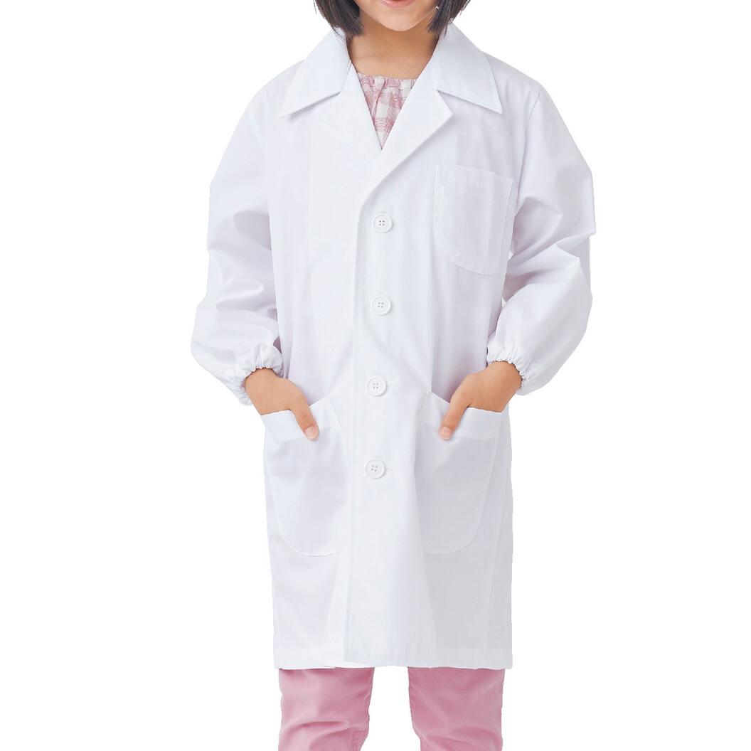 本格的なデザインで、実験や研究にも安心な長めの児童用白衣コートです。 グリーン購入法対象商品です。