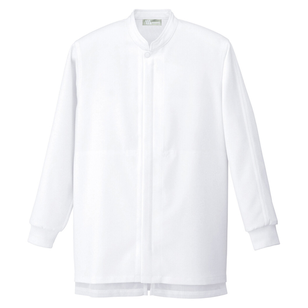 スイングスリーブで動きやすく、静電気を防止する帯電防止性能や、工業洗濯に対する耐久性に優れている衛生コートです。
