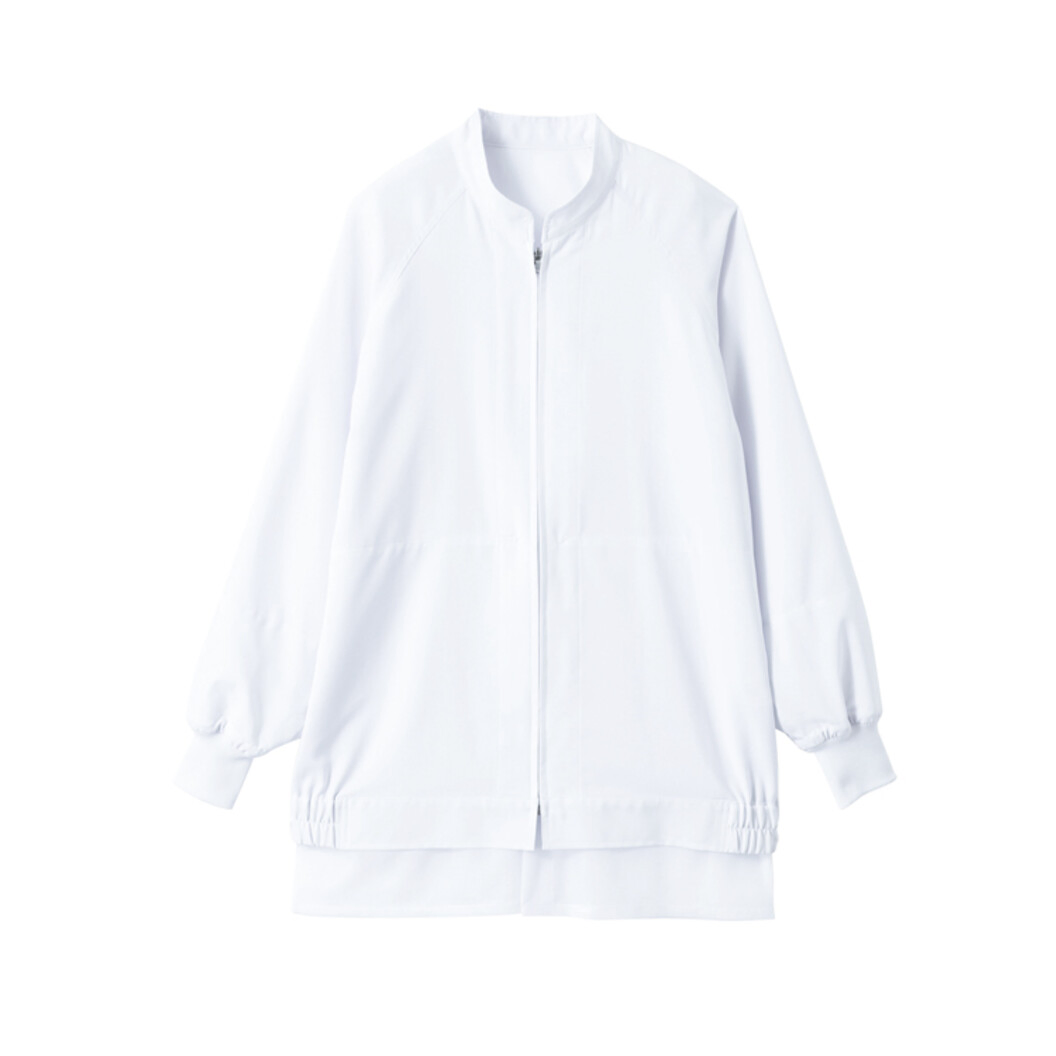 常温作業場に求められる機能をクリアし、洗濯耐久性を実現したジャンパーです。ラグランスリーブで、ノーポケット仕様。フロントはセミオートコイルファスナー、本体袖口はフライス、インナー袖口は鹿の子ニット、ウエストインナーはスナップボタン縦付き、縫い代は巻き伏せ縫いです。