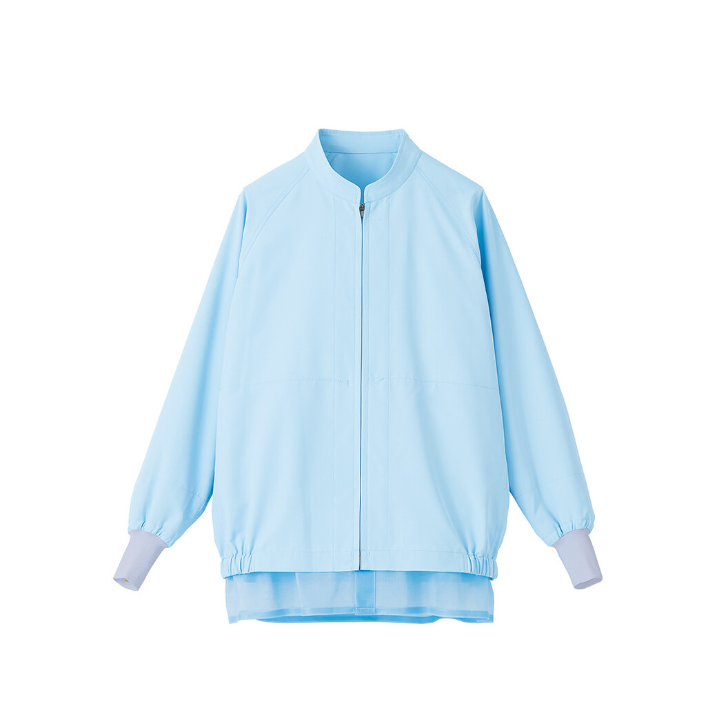 高温作業場向けのベーシックライト(BL)シリーズの長袖ジャンパーにアイスブルーが登場。視認性が高く、清潔感のあるさわやかなアイスブルーはサーヴォ独自のコンセプトカラー。軽量・吸汗・速乾性を兼ね備えた素材「タフタ」を使用しています。フロントはセミオートコイルファスナー、袖口はフライス仕様、インナー袖口には通気性の高いメッシュにゴムを通した仕様です。縦付のスナップボタンで寄れを防ぎ、きちんとパンツインすることが可能。縫い代は巻き伏せ縫い。
