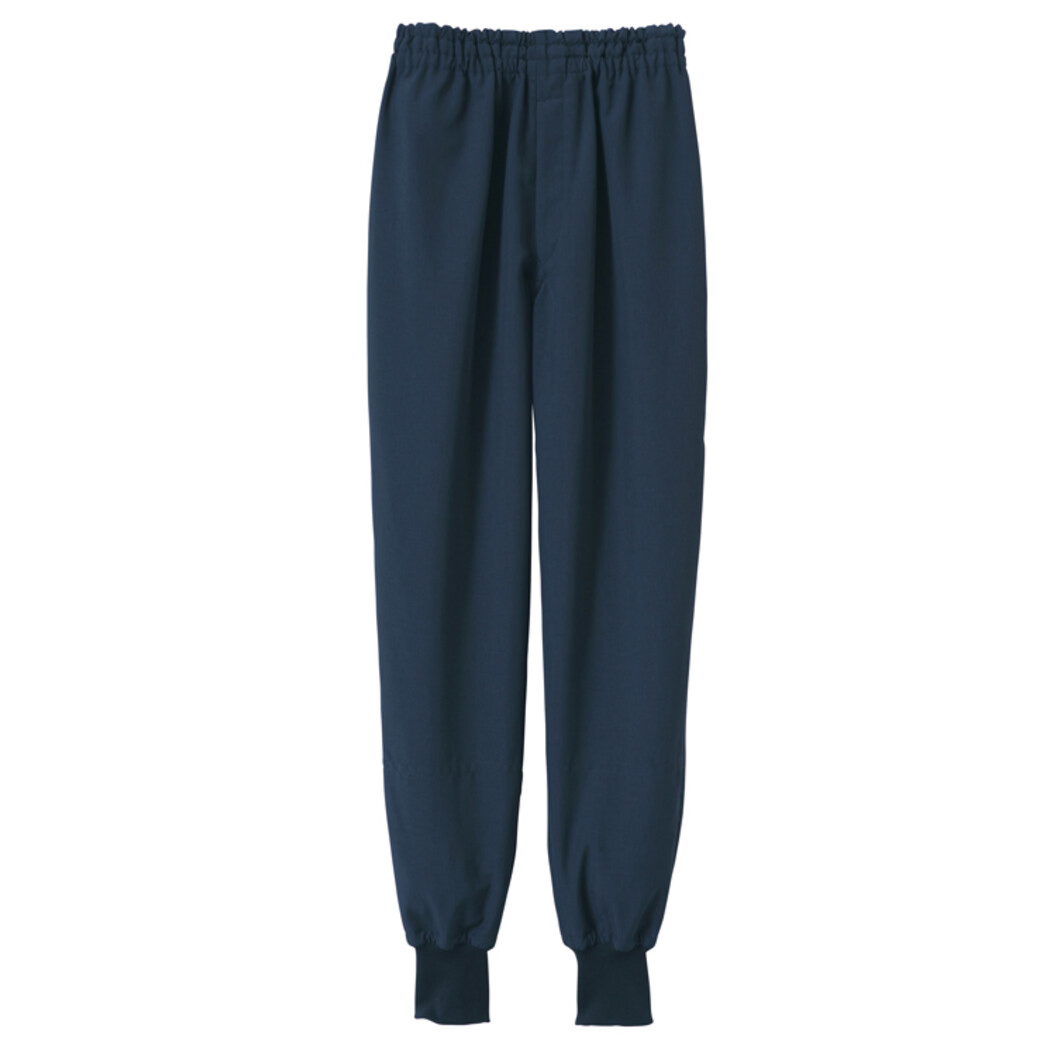 暑さ対策に特化した「クールフリーデ(R)」素材を使用した、高温作業場向けホッピングパンツです。ウエストは総ゴム、前開きは付属品が落下しにくく、熱にも強い、耐久性の高いコイルファスナーを使用。本体裾口はやわらかいフライスを使用して長時間着用しても快適です。インナーの裾口はセルフチェンジし易いようにゴムが入っています。衣服からの異物混入を軽減するため、縫い代は巻き伏せ縫い、体毛落下も防ぎます。ヒップ部分はインナーが透けないように白茶の裏地、通気性の高いメッシュ素材を採用しています。パンツの右前ウエスト裏にキーポケット付き。汚れが目立ちにくいカラーなので公務作業に適しています。