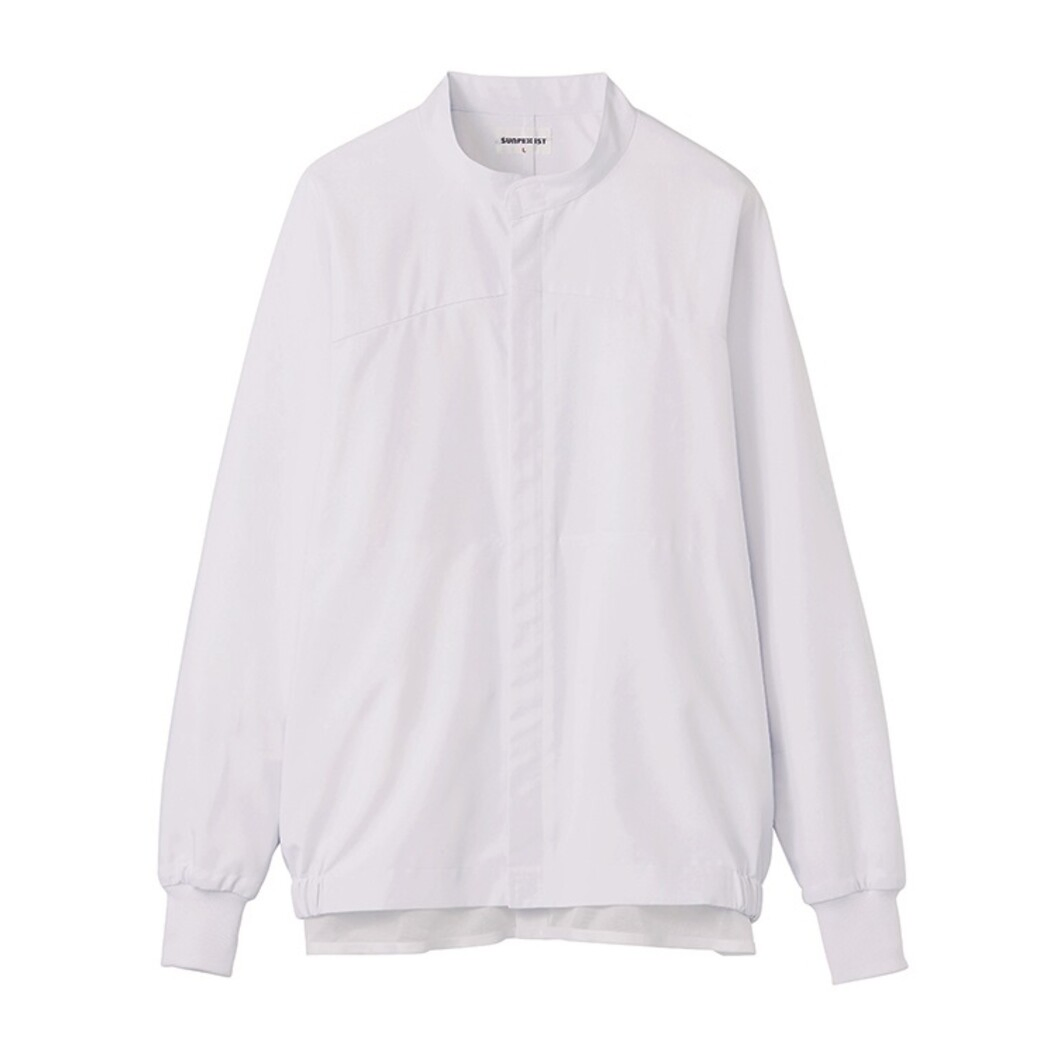 「動作感」「着用感」にこだわり、着る人のストレスを軽減した信州大学繊維学部とサーヴォ(旧:サンペックスイスト)が共同開発した「動着やす衣」ジャンパー。暑さ対策に特化した「クールフリーデ(R)」素材を使用ており、ホワイト、サックス、グリーンの交差汚染対策を意識した3色展開です。首元はスナップボタン仕様でケープのズレや浮きを防止。前開きはセミオートコイルファスナー、前立ては比翼仕立て、洗濯時のファスナーの損傷防止と作業時の安全性を高めてくれます。ウエストインナーはスナップボタン縦付け、縫い代はパイピング始末。本体の袖口はフライス、インナーの袖口は鹿の子ニット。ノーポケット仕様です。