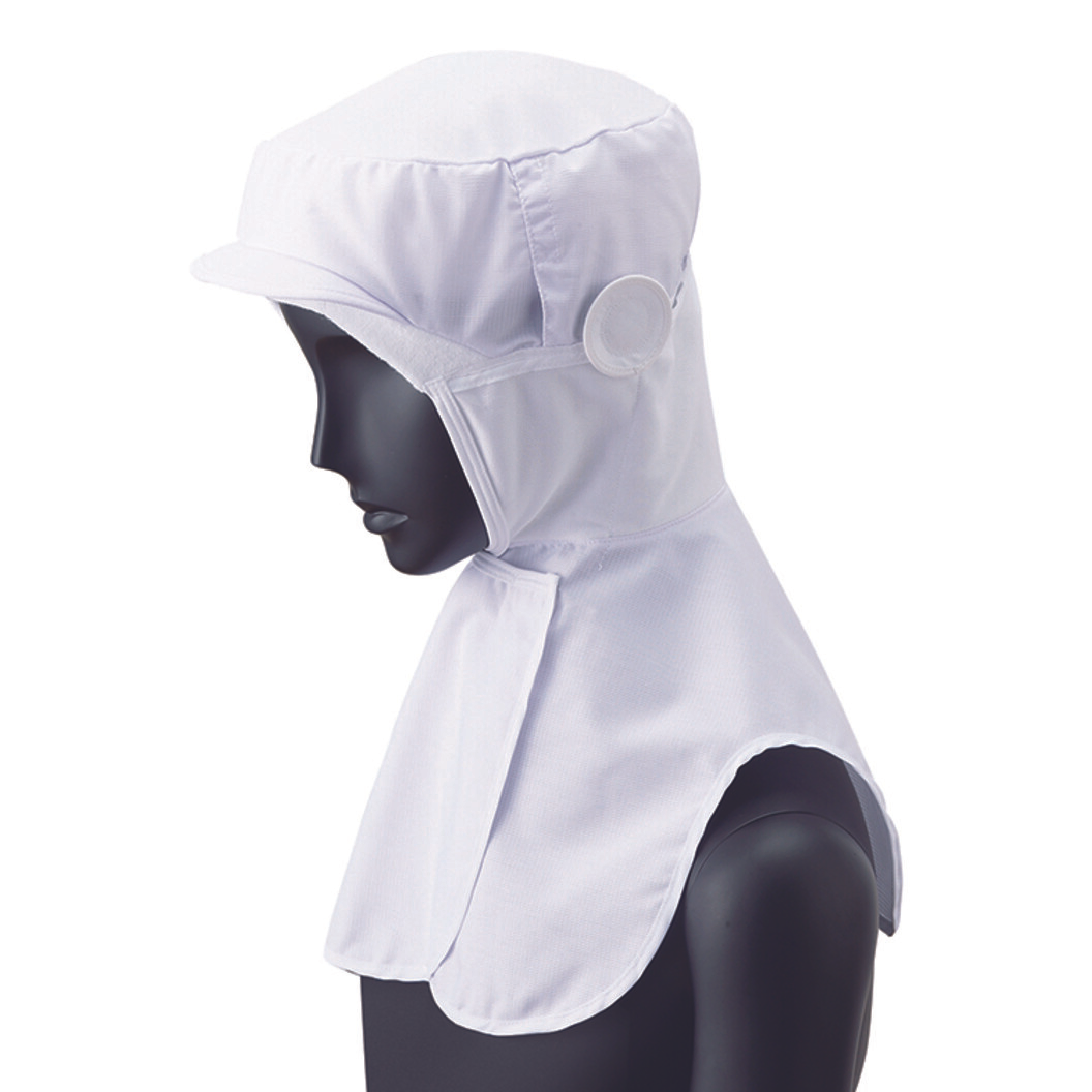 本体は接触冷感素材、ツバとマスク掛けは洗濯耐久性の高い織芯を使用。額はパイル素材で落髪・ズレ防止と汗止めの効果を発揮します。立体ケープで動きやすさも考慮。首には吸汗速乾・伸縮性に優れたコンフォートセンサー(R)を使用。めがねさし付き、前部留めはマジックテープ、後頭周りはゴム入りです。アイスパックを入れて高い冷却効果で快適に作業できます。(アイスパックは別売りです。)