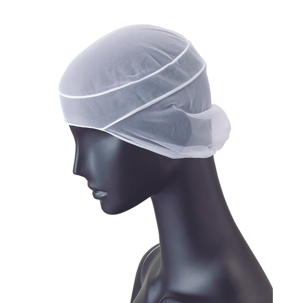 毛髪の落下をより厳重に防止するために帽子やフードの下に着用するヘアネット。