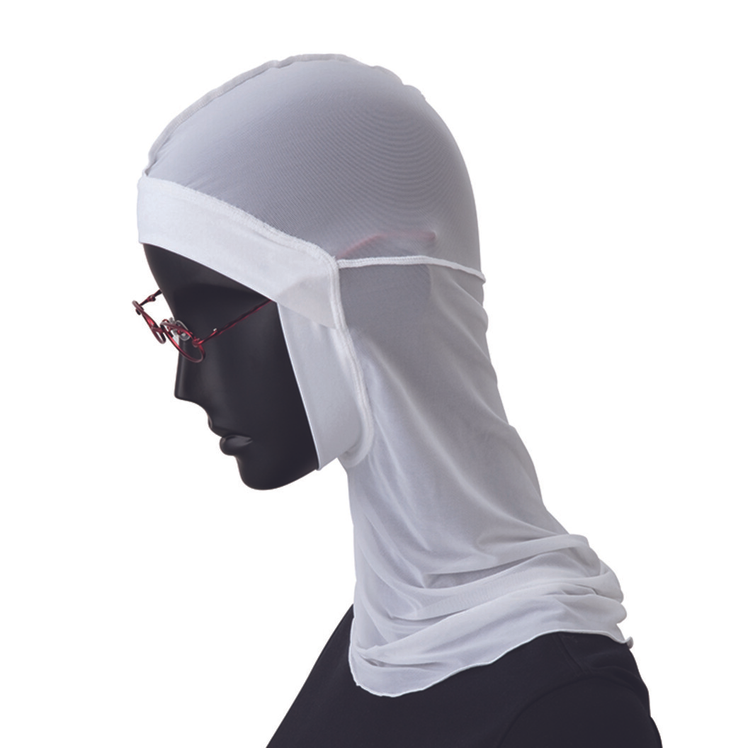 顔周りは吸汗速乾性とストレッチ性に優れたテクノファイン(R)を採用、毛髪落下のリスクを軽減します。丈が長めで大きな動きに対応します。縫い目を表に出すことで顔に縫い目跡が付きません。はさみ込み式メガネ差しを採用。特許 第5393928号 顔周りのニットを一部縫合しないことで隙間にメガネのツルが挿入でき、さらにニットの重なりがあることによりメガネ着脱時に毛髪が出にくい構造です。