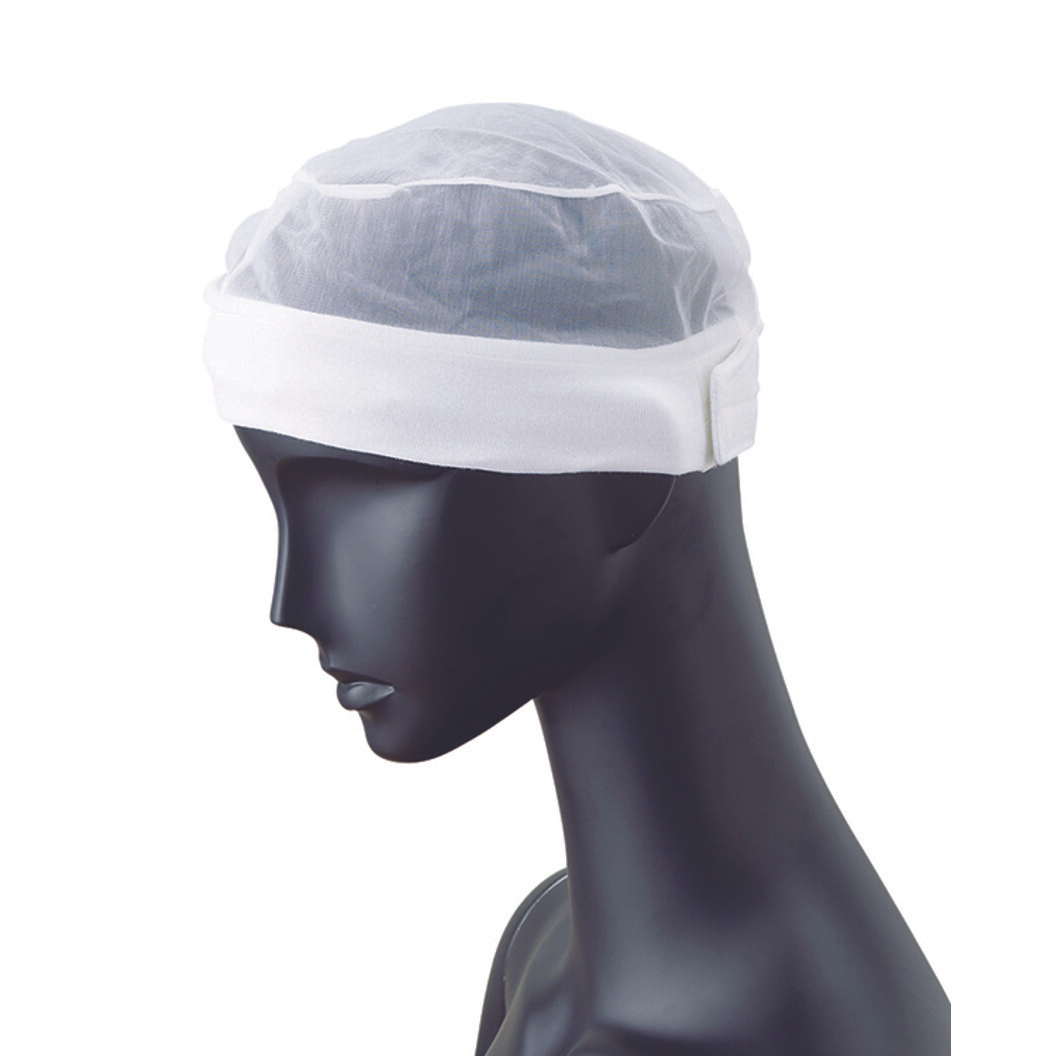 標準の深さのヘアネット。毛髪落下を防止する細かなメッシュと吸汗性の良いフライスニットを採用。マジックテープで後頭周り調整できます。