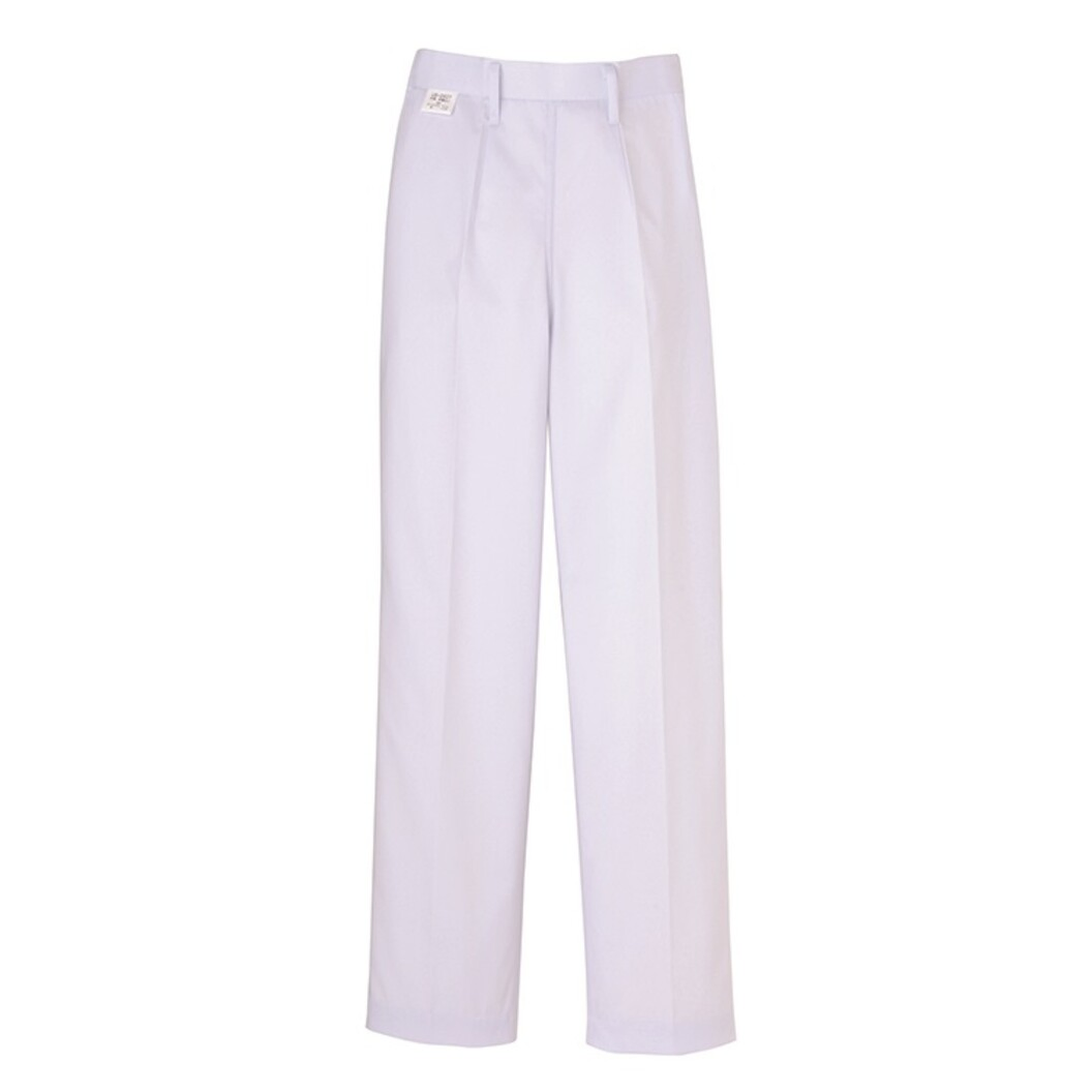 耐久性、安全性、抗菌性に配慮した「ユニベル(R)V3」を使用した常温作業場向けのシリーズ。交差汚染対策を意識したホワイト、サックス、グリーン、ピンクの4色展開のストレートパンツです。ウエスト後ゴム、左脇金属ファスナー、右後外ポケット付き。