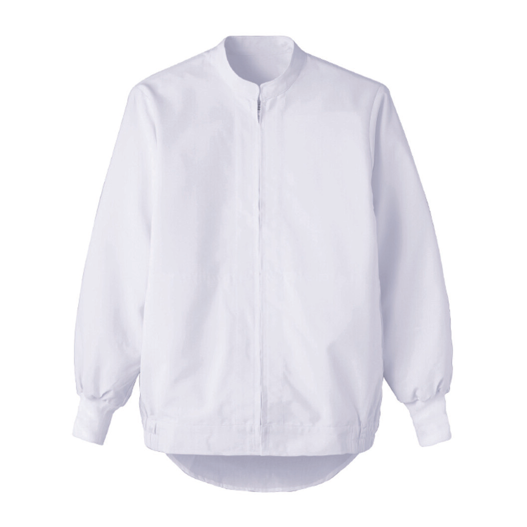 「インナーの透け」「ユニフォームが重い」などの問題を解決するセラミック繊維「ウォーターバランス(R)」のジャンパー。前開きはセミオートコイルファスナー、ウエストインナーはスナップボタン縦付け、縫い代はパイピング。本体の袖口はフライス、インナーの袖口はゴム入り、ノーポケット仕様です。