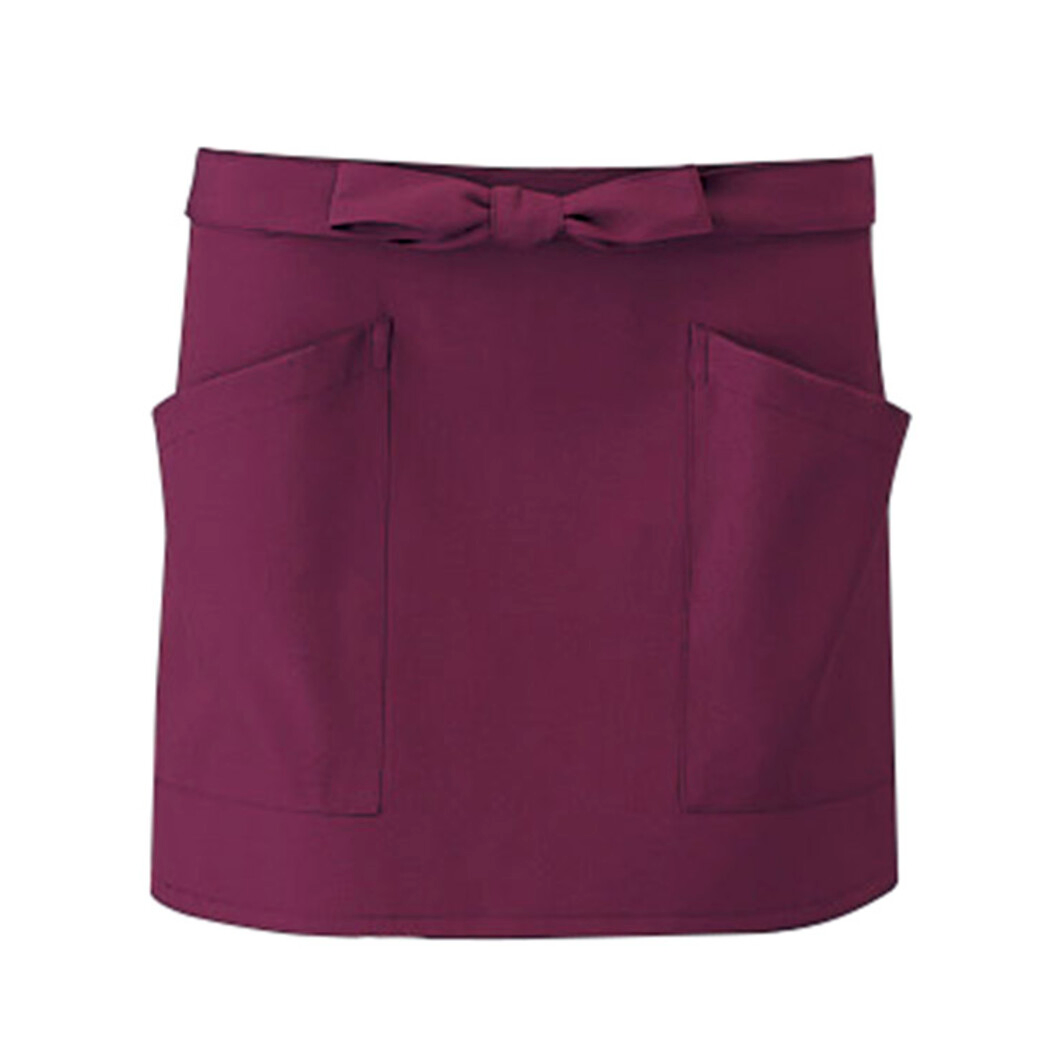 撥水加工を施したポリエステル×綿素材で、様々な現場に対応するショート、ソムリエ風、スカートのようなフレアタイプまでご用意しました。ショート丈の前掛は2ポケットを装備し機能的。