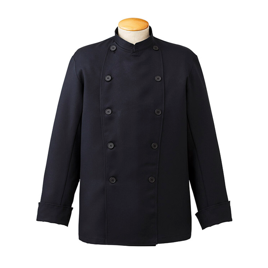 防脱色交織ツイル コックコート 男女兼用 ブラック 長袖 サーヴォ AN1141