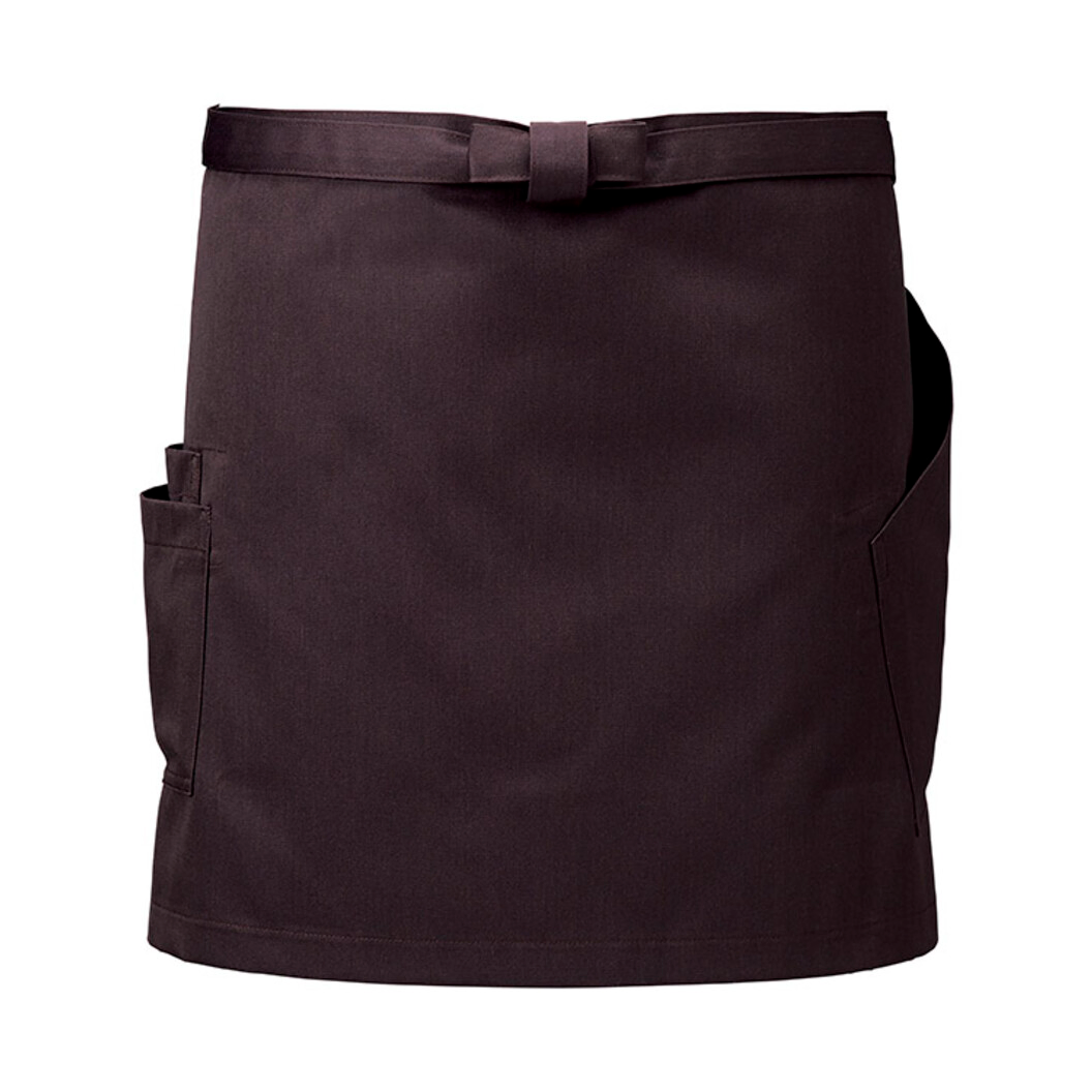 ホールワークをよりスムーズにするために、POSがすっぽり入る専用のポケットを搭載したPOS前掛。左右対称にあしらったポケットは、左はPOS用、右はダスターやペン差し付きの多機能。デザインは、軽快なショート丈とセンターベンツのあるミディアム丈の2パターンで、すべての方に使いやすいようにサイズ展開しています。