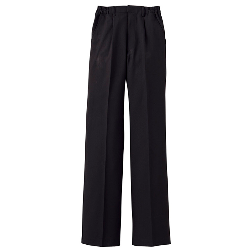 幅広いスタイルに対応するレディスブラックパンツ。脇ゴム入です。
