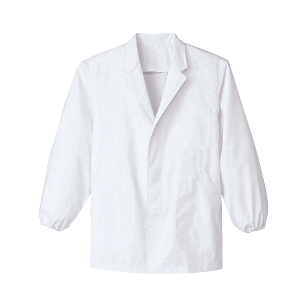 格式あるショールカラーの一着から、小振りなテーラーカラー、ノーカラーまで、和を感じさせる白衣もバリエーション豊富です。『フレッシュエリアR』は洗濯を繰り返しても抗菌力はほとんど落ちず、また、皮膚刺激も少ないため、安心して着用いただけます。左胸外、両腰箱ポケット付き。