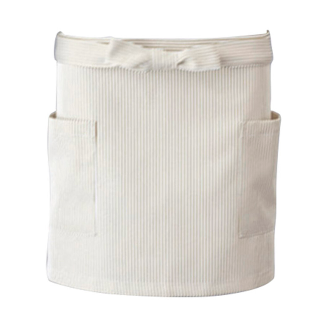 人気のサードウェーブからカフェまで、様々な現場で使えるカジュアルさがポイントの、ヒッコリーストライプのエプロン。私服を生かしたユニフォームにはショートな前掛を。
