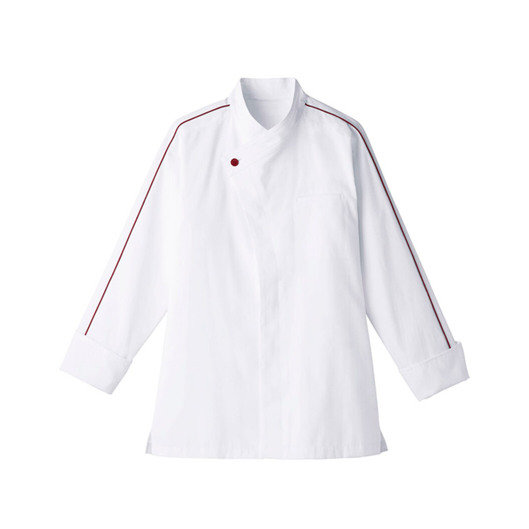 カラーラインがアクセントのポップな雰囲気が人気。コックコートのプロフェッショナルな印象はそのままに、カラーラインでアクセントを加えたモデルです。帽子やエプロンとのコーディネートのしやすさも特徴です。●男女兼用のSS、Sサイズはレディス用、Mサイズ以上はメンズ用。