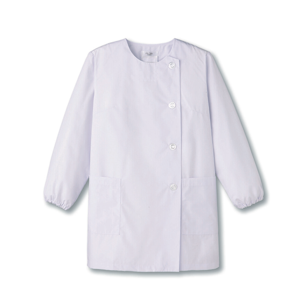 格式あるショールカラーの一着から、小振りなテーラーカラー、ノーカラーまで、和を感じさせる白衣もバリエーション豊富です。『フレッシュエリアR』は洗濯を繰り返しても抗菌力はほとんど落ちず、また、皮膚刺激も少ないため、安心して着用いただけます。両腰にポケット付き、袖口はゴム仕様になっています。着丈がMサイズ73cmと長めになっています。