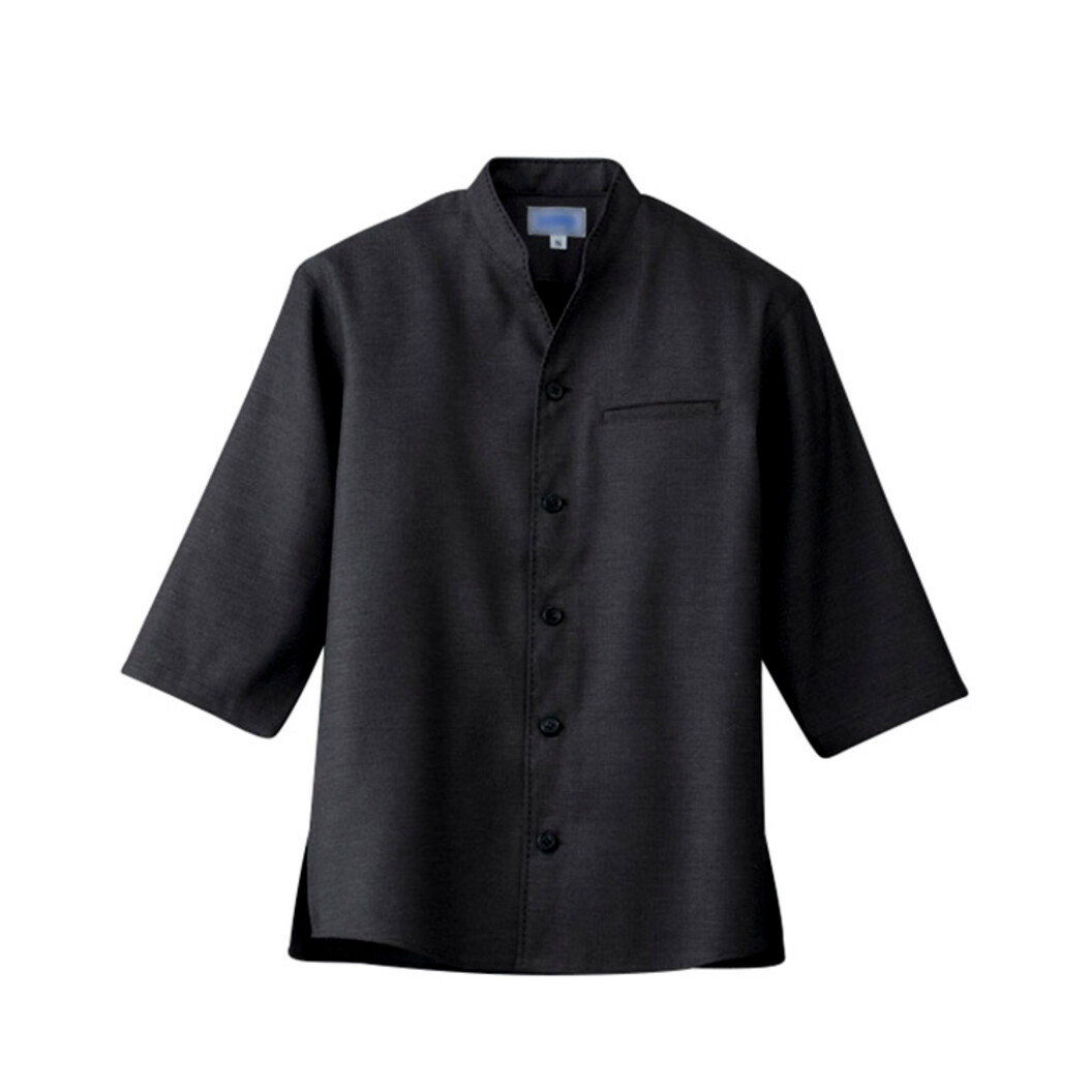 和系の生地を使用したスタンドカラータイプ。デザイン違いでオープンカラー・レギュラーカラーもあります。左胸片玉縁ポケット付き。●男女兼用のSS、Sサイズはレディス用、Mサイズ以上はメンズ用。