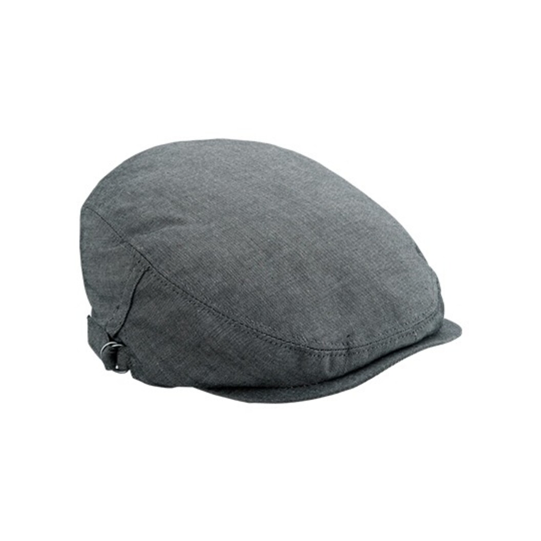 杢調グレーのハンチングで、スタイリングに抜け感をプラス。両脇にDカンが付いて、サイズ調節が可能です。