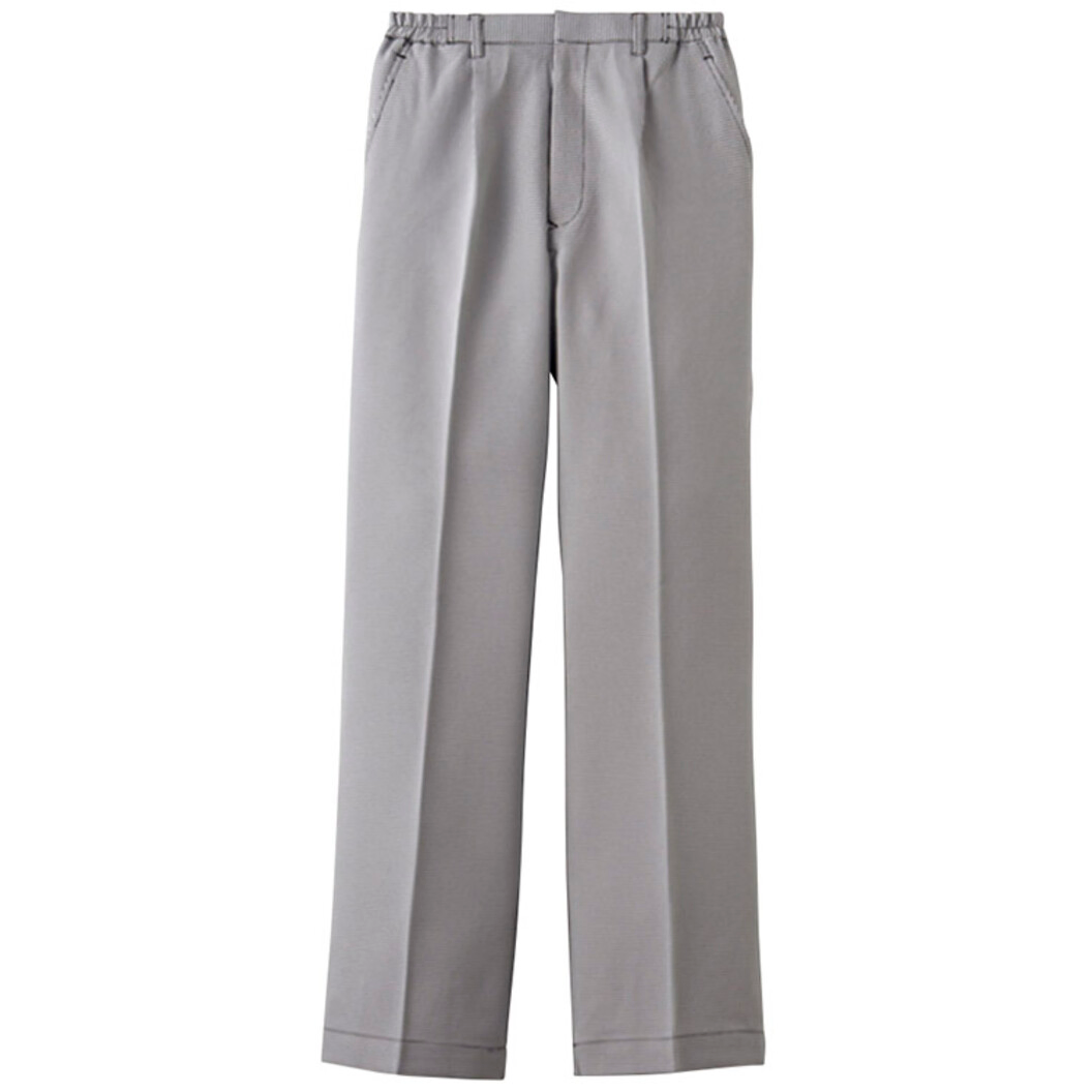 防脱色加工がうれしい男女兼用万能カジュアルパンツ。脇ゴム入。両脇スラッシュ、両後片玉縁ポケット付き。