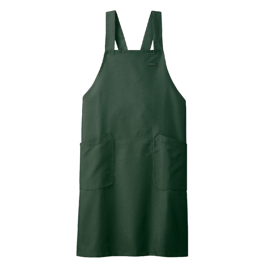 撥水撥油素材の胸当てエプロンです。両腰ポケット付き。肩ひも3段と腰ひも調節で着用できるフリーサイズ。幅太めの肩ひもでズレにくく着用しやすいデザイン。エコマーク認定商品。グリーン購入法対象商品。