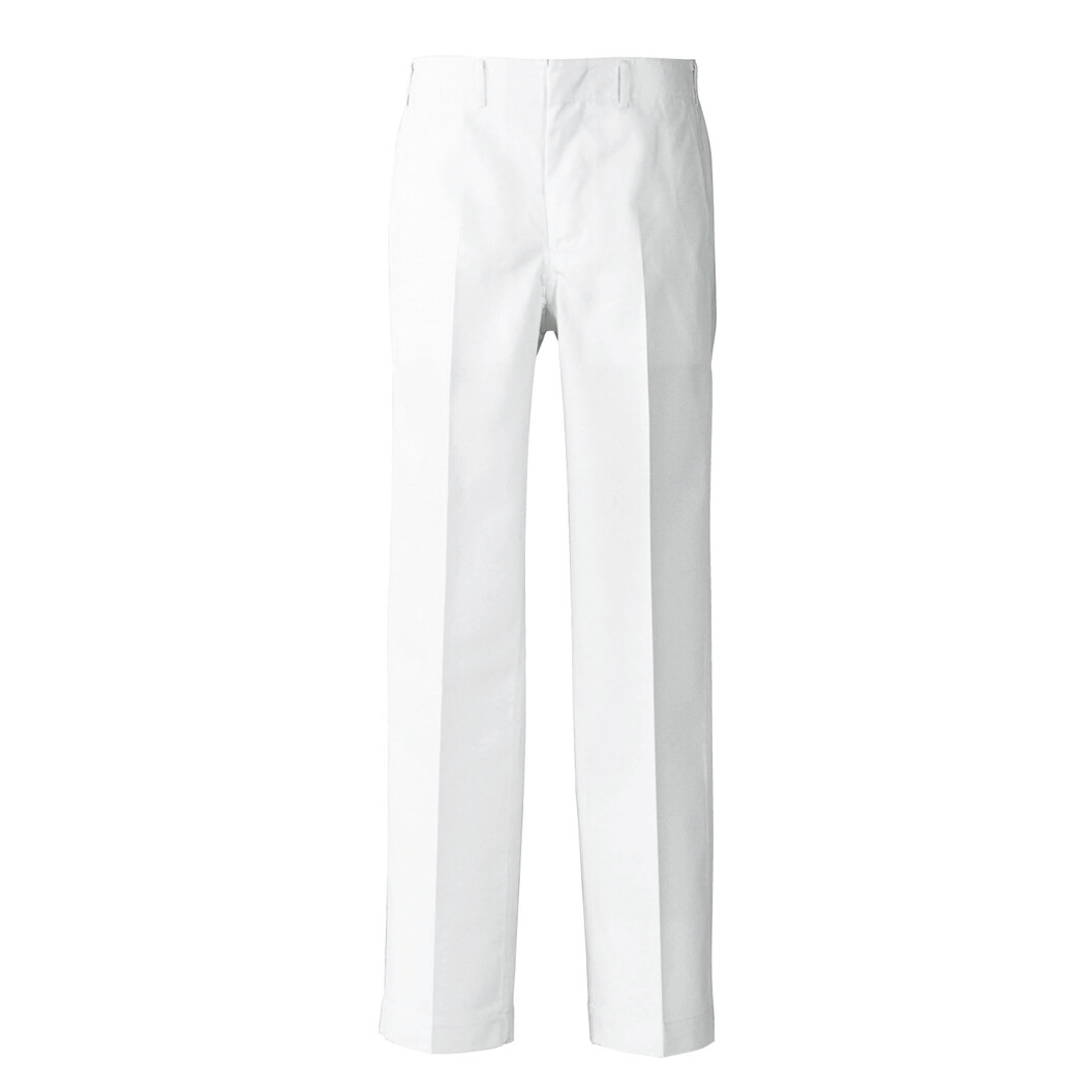 ポリエステル綿で男性用キャンティーンパンツです。シルエットはスーツと合わせるパンツのような作りになっています。ジャストなシルエット感ですので、エレガントな雰囲気の見え感になります。抗菌防臭付き。95cmよりワンタックです。