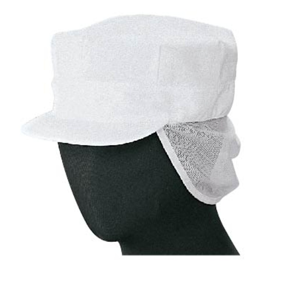 物を生産する現場で着用する帽子です。ジャージー素材ですので柔らかくストレッチ性があります。クラウンに八本のダーツを施し締め付けることなく着用できます。後部にタレがついていますので異物混入を簡単ですが防ぐことができます。バイザーは柔らかめ。生地は制菌、SR(汚れ落としやすい機能)、吸水速乾機能ありと高機能な八角帽となっています。