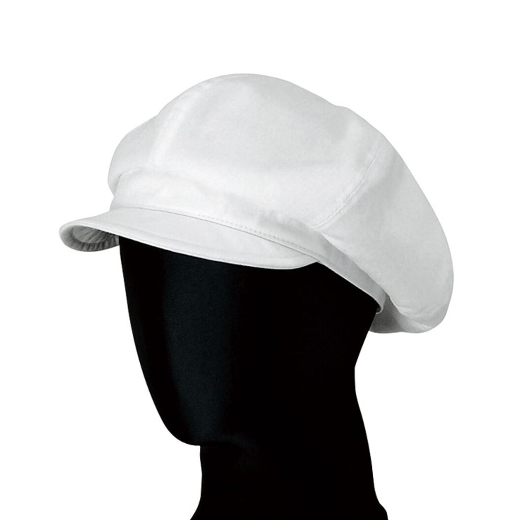 定番のキャスケット。カツラギの綿100%、白と黒の展開です。後ろに頭周り調整ベルト付き。