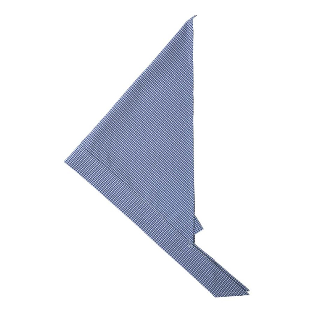 生地に特徴ある三角巾。型崩れせず、シワや縮みもほとんどなく工業洗濯にも対応。吸水速乾性もあり汚れも落としやすくなっています。ギンガムチェック柄は細かいので一見無地の柔らかいカラーに見えるところもポイントです。この三角巾はタイにもなる2wayです。同素材同色のエプロンとキャスケットもありますので一緒に合わせるとまとまりやすい。