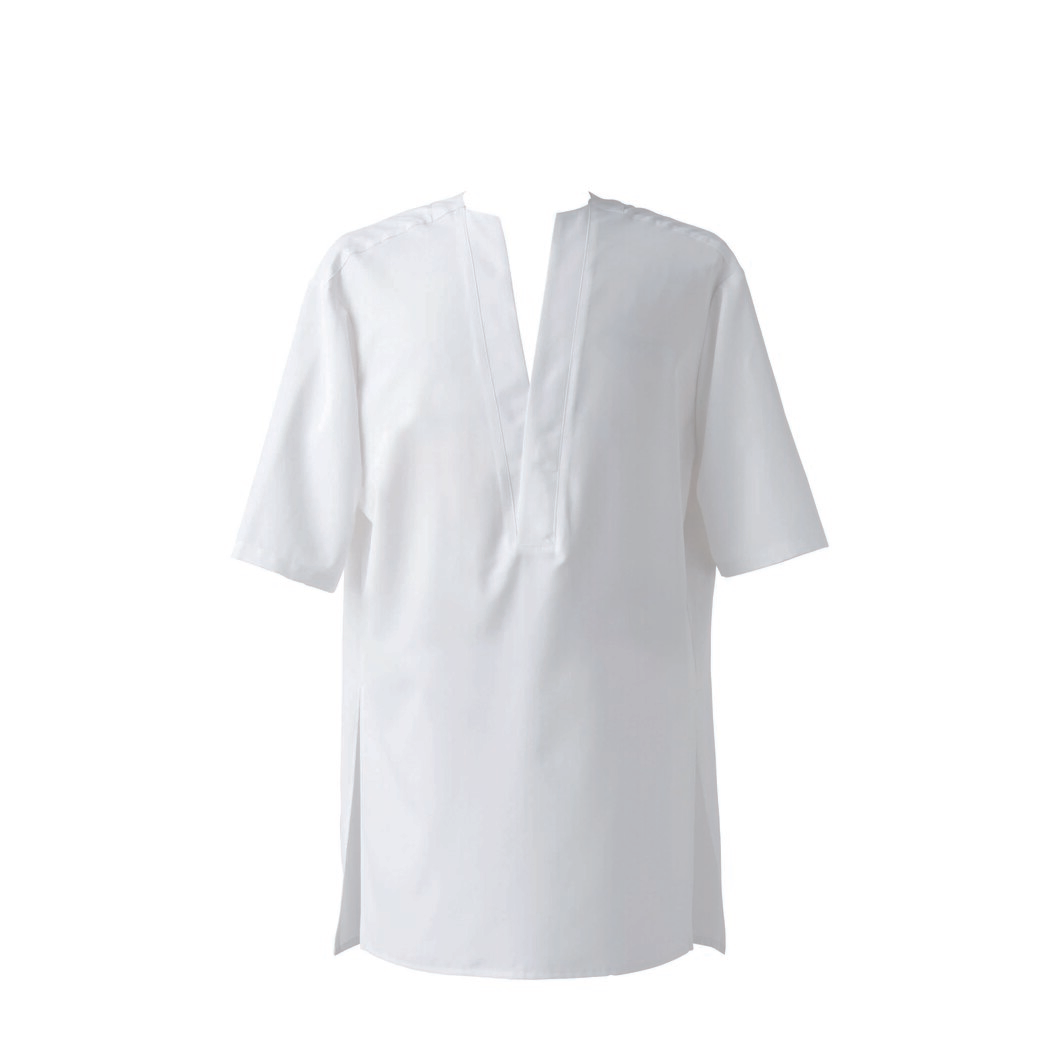 割烹着をモダンに進化させ和だけでなく洋にも合わせることが出来る新しいエプロンを作りました。生地はシルクのように滑らかで薄手の生地です。光沢感や落ち感に高級感を感じさせます。コーディネート次第ではレストランサービスだけでなく、コンセプトホテルのフロント、こだわりある嗜好品やコスメ類の接客販売などにも着用出来ると思っています。色はモダンで大人、落ち着きも感じさせる色展開。個性の強いシーンで活かせるアイテムだと思います。