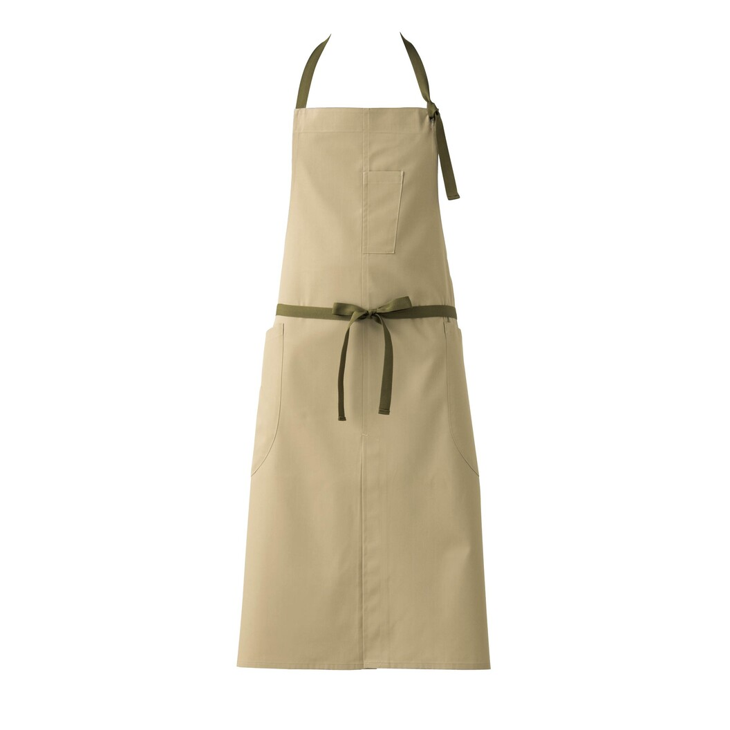 ツイルでありながら表面が滑らかなブロークンツイルというオリジナル生地を開発、制電糸入り、ストレッチ有り、SRという汚れが落ちやすい機能があります。生地に触れると綿100%に感じますが耐久性を考えてポリエステルを混ぜています。多色展開、紐配色により色々な表情があり、どんな服にもあう色調が特徴、カジュアルからエレガントまで色々なシーンにあいます。胸にペン用ポケットあり、種類によりますが2本程度は入ります。腰には左右で大きなポケット有り、ゴミがたまりにくいラウンドデザインになっています。前に深いベントがあり足さばきが楽です。後ろの腰紐通しのホールを利用するときれいに着用できます。