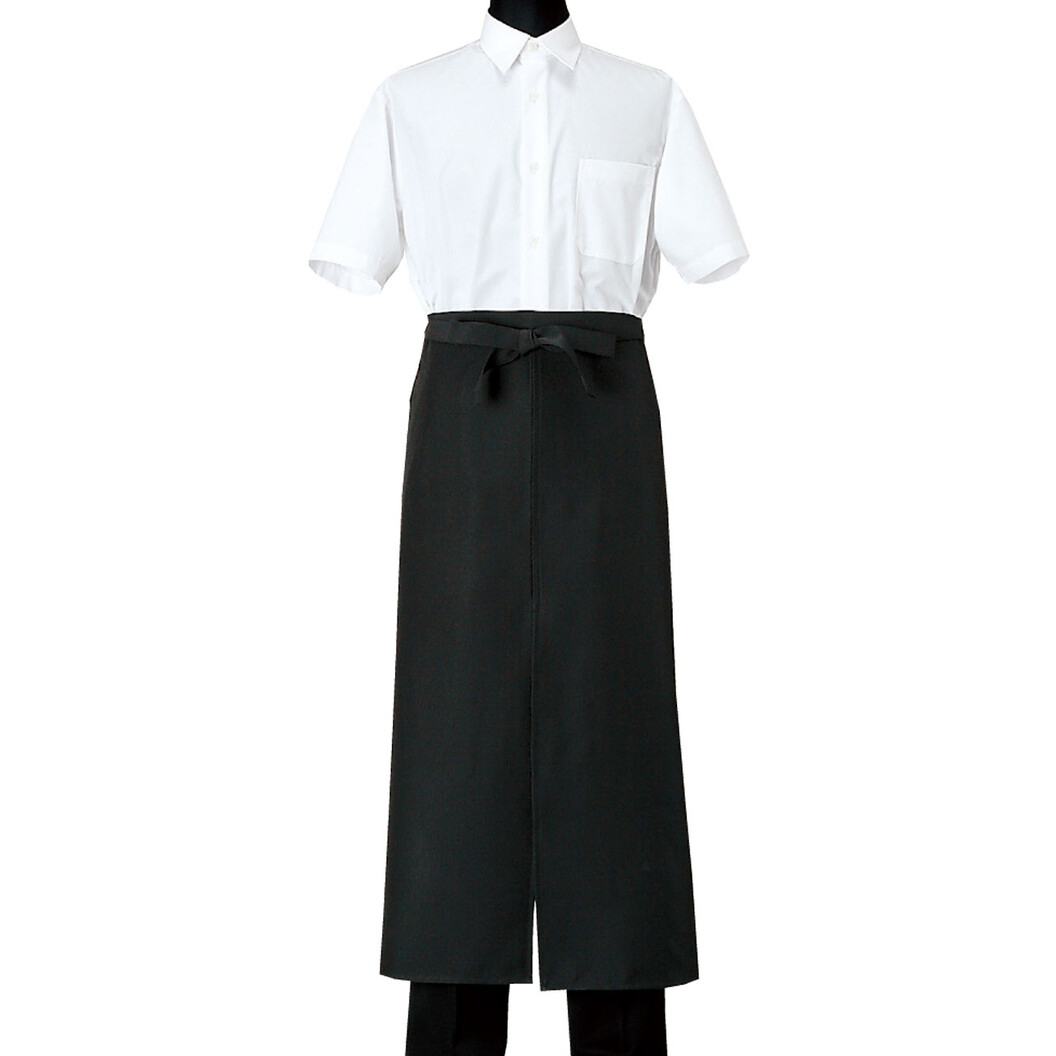 ポリエステル100%、黒、前中心にスリットが必要であるならこの商品がオススメです。ギャバジンという織りでポリエステル100%ではありますがあまりギラつきもなく高級感あるものになっております。生地の機能はありません。スリット無しであればCT2569-9,CT2564-9があります。この商品のスリットは深めで足さばきはよいです。また深いがゆえに歩くたびにスリット部分の生地が意外と動きます。それを良しとするかしないかは一度ご試着されてご検討していただくのがよいかと思います。