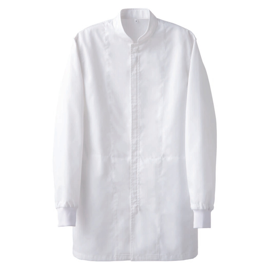 衛生白衣の中で生地、仕様共に高スペックなものの一つになります。生地はオリジナルで開発。一番の特徴は親水性による防汚性と着心地に関わる生地風合いです。ポリエステル100%の糸を改質することでナノレベルでの親水性(吸水性)を得て、繊維の中に入った汚れを水が掻き出すイメージです。また洗濯中の再汚染も防ぐので、とても衛生的な生地になっています。この機能が半永久的に持続します。抗菌防臭機能もあり、主にニオイの元になる菌の増殖を抑え悪臭を防ぎます。着心地に関してはポリエステル100%の生地ですが特殊な撚糸を取り入れることで柔らかい風合いに仕上がりました。デザインに関しては縫製仕様やディティール含め充実した内容になっており、詳細は下記に記載されています。異物混入させない、常に清潔に、着心地による快適性、見た目の美しさも含めこだわりの商品になっています。