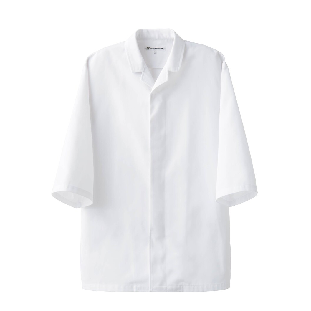 衛生白衣の中で生地、仕様共に高スペックなものの一つになります。生地はオリジナルで開発。一番の特徴は親水性による防汚性と着心地に関わる生地風合いです。ポリエステル100%の糸を改質することでナノレベルでの親水性(吸水性)を得て、繊維の中に入った汚れを水が掻き出すイメージです。また洗濯中の再汚染も防ぐので、とても衛生的な生地になっています。この機能が半永久的に持続します。抗菌防臭機能もあり、主にニオイの元になる菌の増殖を抑え悪臭を防ぎます。着心地に関してはポリエステル100%の生地ですが特殊な撚糸を取り入れることで柔らかい風合いに仕上がりました。デザインは和コート、6分袖です。縫製仕様やディティール含め充実した内容になっており、詳細は下記に記載されています。異物混入させない、常に清潔に、着心地による快適性、見た目の美しさも含めこだわりの商品になっています。