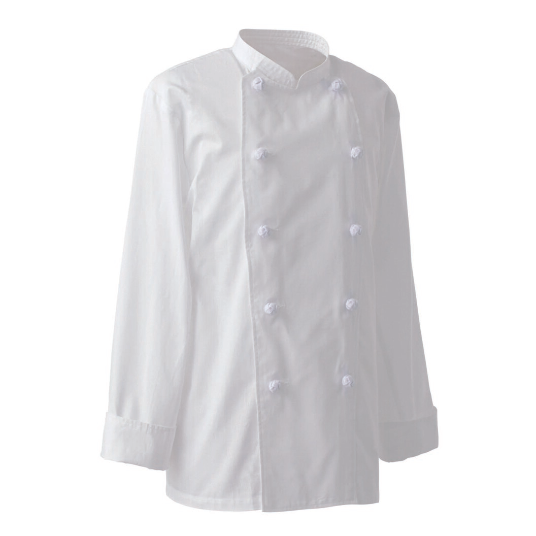 薄手の夏用コックコート。シャツ生地に近い薄さです。生地の表面が凹凸状のなっているため、ベタつかず爽やかな肌触りです。 風通しの良い織り組織ですので、さらに涼しさを感じることが出来ます。