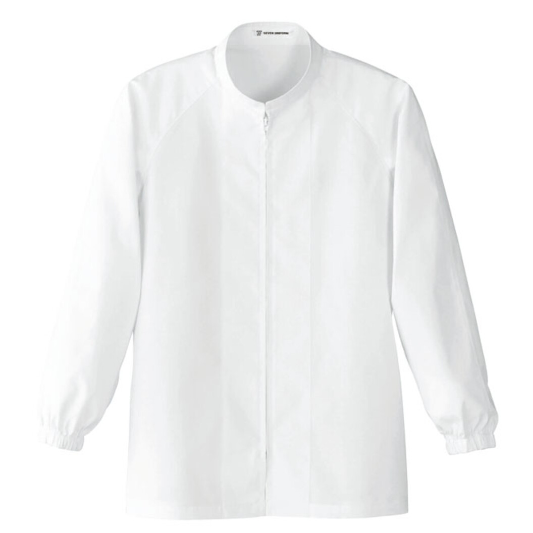ラグラン構造で腕が動き易い。異物混入を防ぐため、袖は2重のガード機能あり。一つは袖口ゴム、もう一つは肘部分内側にもアンダーカバーが付いています。ウエストもアンダーカバーが付き異物混入を防ぐディティールが色々と施された衛生白衣です。破損や変形しにくく熱にも強いコイルファスナーを使用。抗菌防臭機能あり、工業洗濯にも対応。