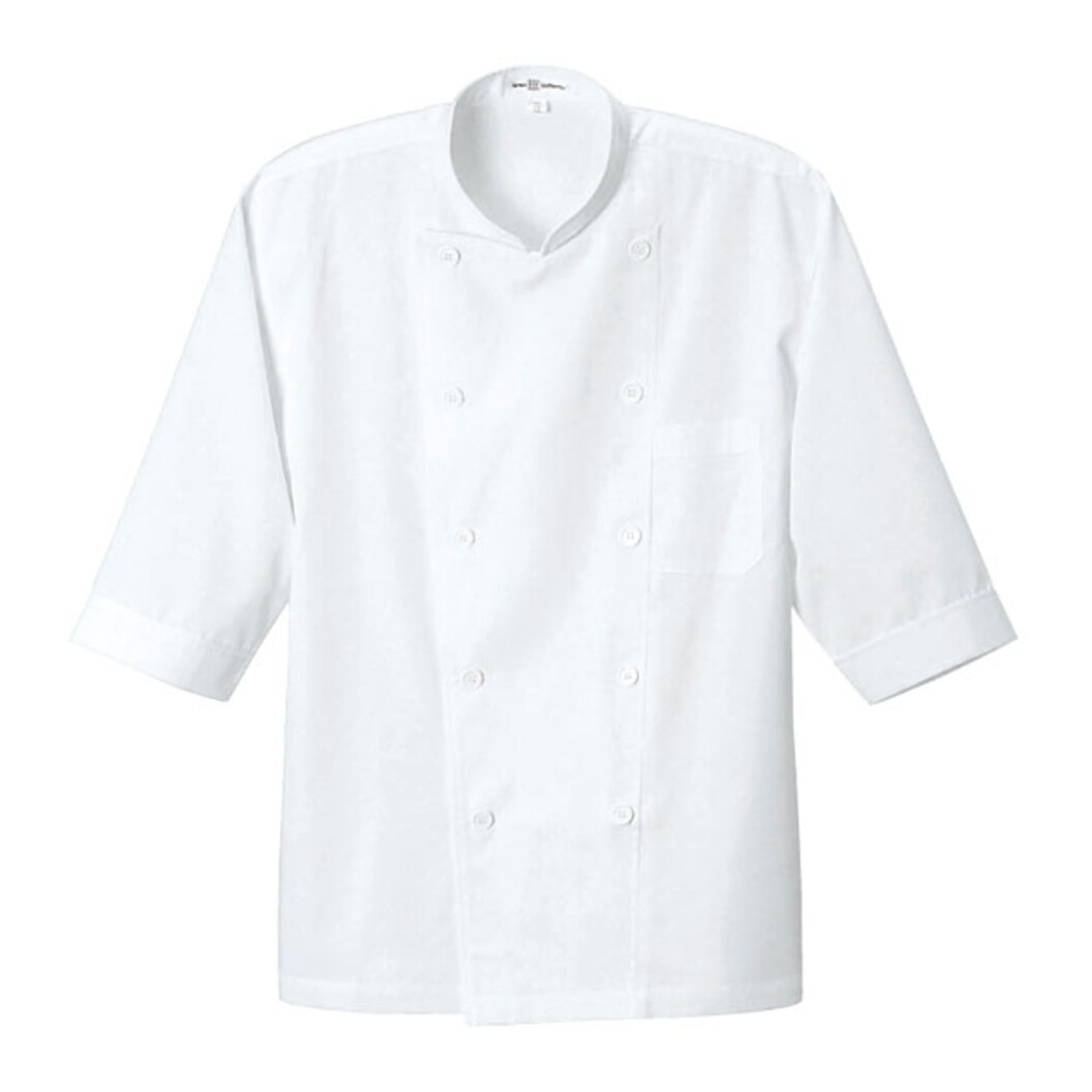 生地が薄手でシャツに近い素材で作られているところが特徴です。ボタンもコックコートとは違うカジュアルなボタン、アイテムの展開色も白の他にライトピンクもありますので、料飲関係はもちろんですが、医療系受付や接客業、軽作業向けにも適していると思います。左胸にポケットあり。