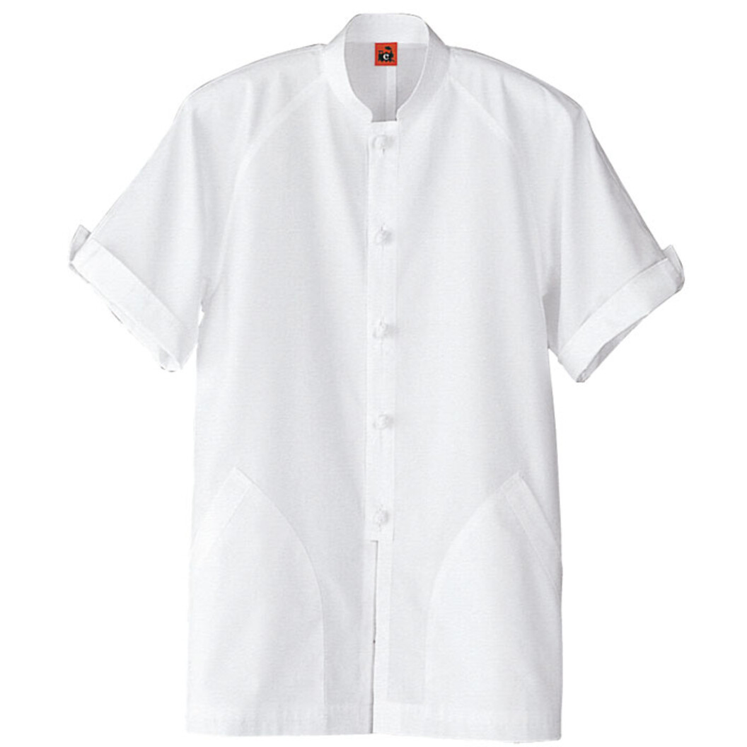 通気の良いヘアコード生地を使用し軽くて涼しいコートです。ラグランスリーブで半袖、とても動き易い仕様になっています。組紐ボタン。腰の左右にポケットあり。シェフからサービス、物販スタッフまでと汎用性の高い商品になっています。