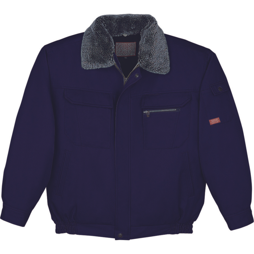 混紡素材の衿ボア付防寒ウェアです。耐久性だけのユニフォームは、もう要らない。衿ボアを取り外して着用することができます。