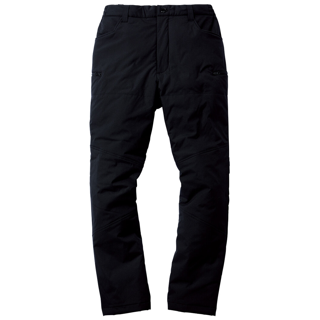 保温性の高い発熱体内蔵型電熱パンツ。ブラックアルミメッシュ裏地+3ヶ所発熱で保温性が高くストレッチ素材で動きやすく作業時のストレスを軽減します。