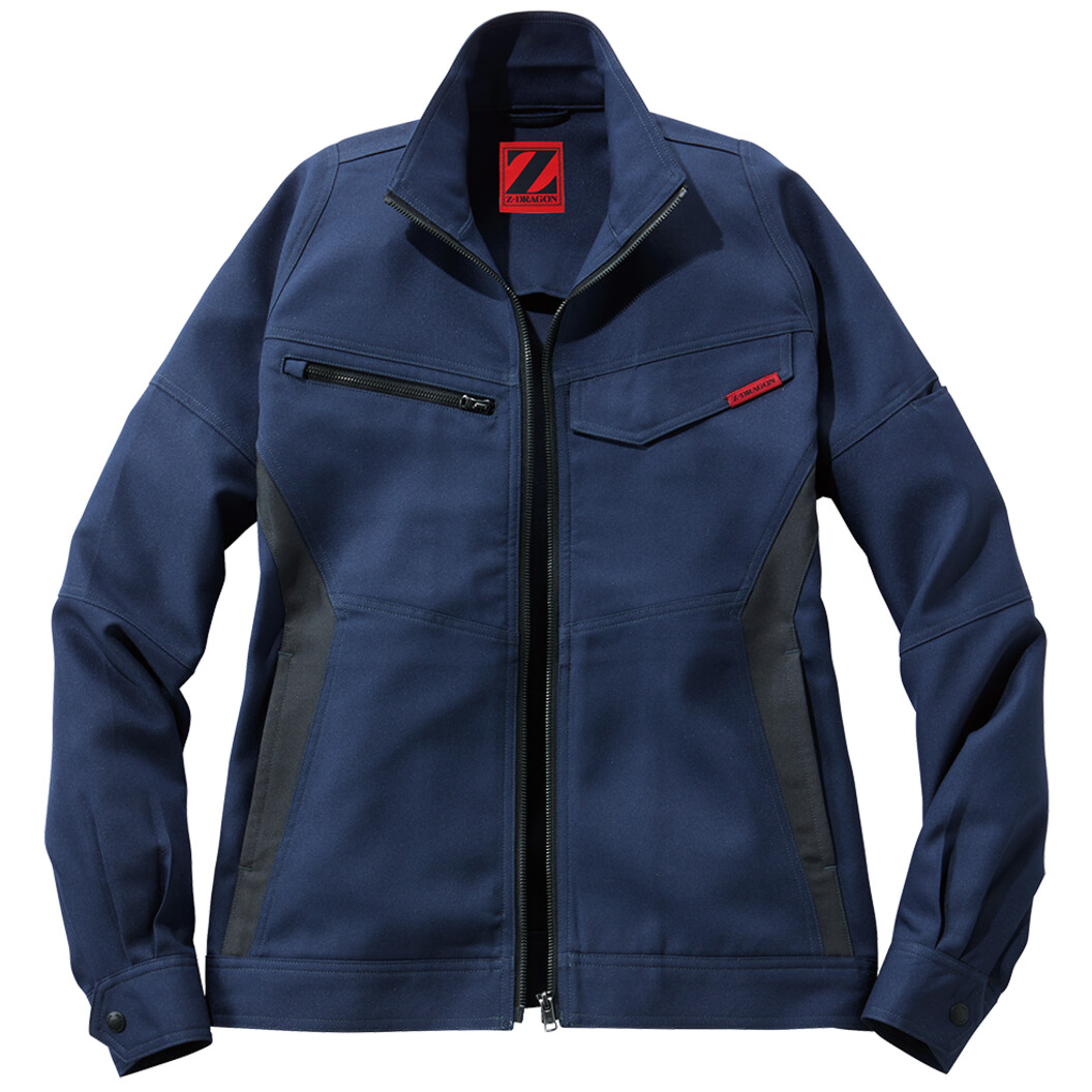動きやすさと機能性を兼ね備えた配色使いのカジュアルワークウェア。製造業・運送業・建設業などあらゆる現場に対応する帯電防止JIS T8118適合ウェアです。