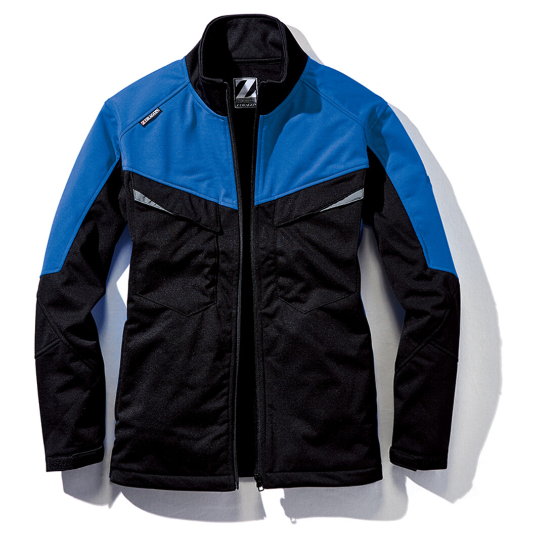 ストレッチ性に優れ、防風性も備えた裏フリース素材。背中にランヤード取付口を装備したフルハーネス対応防寒。帯電防止JIS T8118 適合ウェアです。